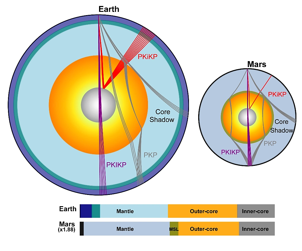 ▲ 地球和火星深部结构对比暗意图