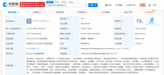 该公司成立于2021年5月,法定代表东说念主为李文利、监事为李佳琦,注册老本1000万东说念主民币,由李佳琦与母亲李文利隔离捏股99%、1%。(罗宁)